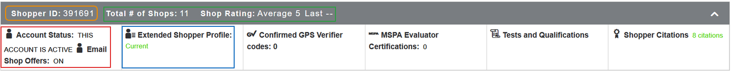 Next to it, you can see the total # of shops you performed, your average shop rating, as well as the last shop grade you received.